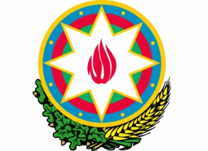 Государственный герб Азербайджанской Республики является символом независимости Азербайджанского государства. Государственный герб представляет собой изображение восточного щита, помещенного на дуге, составленной из дубовых ветвей и колосьев. На щите на фоне цветов Государственного флага Азербайджанской Республики имеются изображения восьмиконечной звезды, в центре звезды - языков пламени.